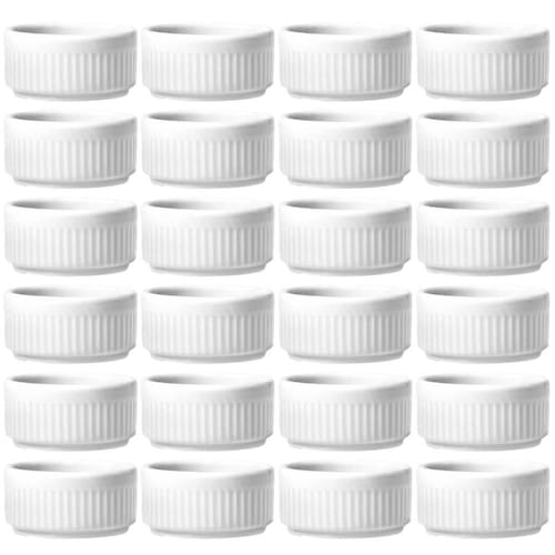 24 Ramekins Restaurante de Porcelana 85ml Branco Canelado Germer Porta Molhos.