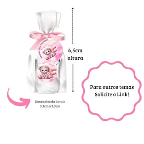 Kit Mini Álcool Gel Perfumado - Delicadeza, Proteção e Muito Charme Apresentamos o kit ideal para quem quer oferecer cuidado e carinho de forma prática e cheia de ternura Nosso mini frasco de álcool gel contém 30ml e mede apenas 7cm, perfeito para levar na bolsa, no carrinho ou ter sempre à mão. Cada frasco é suavemente perfumado com a fragrância de algodão, um cheirinho aconchegante e delicado, que lembra o frescor e a pureza do seu bebê. O diferencial mais encantador Todos os frascos possuem uma linda estampa de ursinha, acompanhada de uma letra do alfabeto. Perfeito para enfeitar, presentear ou simplesmente espalhar cuidado com um toque lúdico e alegre. O kit contém 25 unidades, enviado desmontado, para que você possa montar com carinho para sua ocasião especial: maternidade, chá de bebê, batizados ou festinhas. O que acompanha o kit: frascos Cristal de 30ml, com tapas transparentes com alcool gel com cheirinho de bebê 25 frascos preenchidos com álcool gel com fragrância de algodão 25 saquinhos de celofane 25 fitas na delicada cor rosa ou variada de acordo com a disponibilidade em sempre presamos a melhor combinação 25 tags redondas para dar um toque final 25 adesivos redondos, cada um com a estampa fofa da ursinha + letra do alfabeto Proteção e carinho em cada detalhe, com o cheirinho mais doce do mundo e a fofura das nossas ursinhas Garanta já o seu kit e torne cada momento ainda mais especial