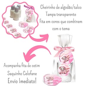 Kit Mini Álcool Gel Perfumado - Delicadeza, Proteção e Muito Charme Apresentamos o kit ideal para quem quer oferecer cuidado e carinho de forma prática e cheia de ternura Nosso mini frasco de álcool gel contém 30ml e mede apenas 7cm, perfeito para levar na bolsa, no carrinho ou ter sempre à mão. Cada frasco é suavemente perfumado com a fragrância de algodão, um cheirinho aconchegante e delicado, que lembra o frescor e a pureza do seu bebê. O diferencial mais encantador Todos os frascos possuem uma linda estampa de ursinha, acompanhada de uma letra do alfabeto. Perfeito para enfeitar, presentear ou simplesmente espalhar cuidado com um toque lúdico e alegre. O kit contém 25 unidades, enviado desmontado, para que você possa montar com carinho para sua ocasião especial: maternidade, chá de bebê, batizados ou festinhas. O que acompanha o kit: frascos Cristal de 30ml, com tapas transparentes com alcool gel com cheirinho de bebê 25 frascos preenchidos com álcool gel com fragrância de algodão 25 saquinhos de celofane 25 fitas na delicada cor rosa ou variada de acordo com a disponibilidade em sempre presamos a melhor combinação 25 tags redondas para dar um toque final 25 adesivos redondos, cada um com a estampa fofa da ursinha + letra do alfabeto Proteção e carinho em cada detalhe, com o cheirinho mais doce do mundo e a fofura das nossas ursinhas Garanta já o seu kit e torne cada momento ainda mais especial