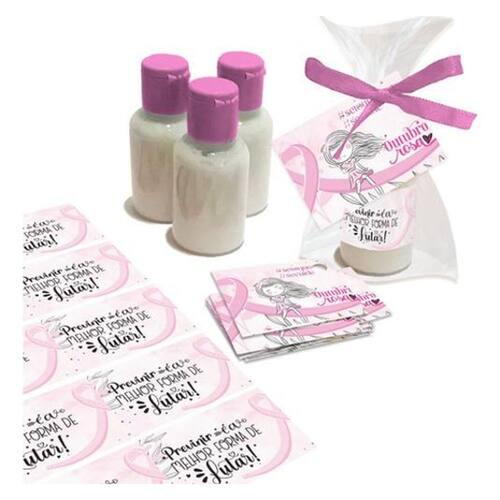 Frascos Cristal de 30ml, com tapas nas cor rosa Etiqueta para cada lembrancinha Tag com furo para cada lembrancinha Fita de cetim para cada lembrancinha Saquinho de celofane transparente para cada frasco