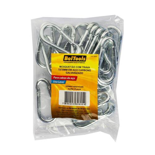 Comprimento total: 70mm. Diâmetro do corpo: 7mm. Carga de trabalho: 110kgf. Material: Aço carbono. Acabamento: Galvanizado.