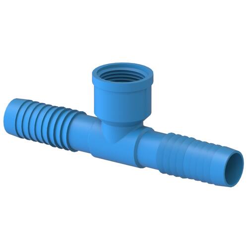 📍 Função: Interligação em formato "T" (ramificação) a 90° para irrigação. • Modelo: Rosca Interna x Espiga Escalonada (Garante fácil encaixe e vedação).