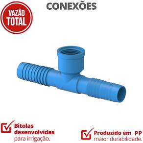 ? Benefícios do Produto • Vedação Superior: A Espiga Escalonada (com diâmetros progressivos) facilita o encaixe e mantém a qualidade da vedação. • Design Otimizado: Formato Tê a 90° ideal para fazer ramificações ou curvas no sistema. • Resistência Extrema: Altamente resistente a produtos químicos e a solos contaminados, garantindo maior durabilidade. • Praticidade: Fácil adaptação a mangueiras e tubos, com indicação de bitola gravada. • Qualidade: Qualidade garantida, seguindo as normas aplicáveis e com maior comprimento da categoria.
