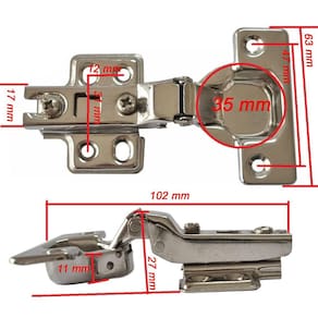 Dobradiça caneco 35mm em aço inox para portas de armário. Quantidade: Kit com 2 dobradiças caneco 35mm 8 parafusos Dobradiça inox curva kit c/2 Esta dobradiça caneco de 35mm, fabricada em aço inox de alta qualidade, é a escolha ideal para quem busca durabilidade e resistência à corrosão. Perfeita para portas de armários de cozinha, banheiro ou qualquer outro móvel, proporciona um fechamento seguro. Com design discreto, oferece ajuste preciso, garantindo a funcionalidade e a estética dos seus móveis. Instalação fácil e compatível com uma ampla variedade de materiais, esta dobradiça é a solução definitiva para quem deseja unir praticidade e estilo. São indicadas para móveis com portas sobrepostas que necessitam de um fechamento total, isto é, móveis simples de duas portas ou módulos de roupeiros modulados. Além disso, as dobradiças retas possuem uma limitação de abertura, ou seja, elas não abrem ângulos maiores que 90º Dobradiça em aço inox 201 calço fixo curvo com parafusos Benefícios: As dobradiças possuem design funcional permite o fechamento suave e silencioso das portas. São ideais para uso em móveis, proporcionando maior durabilidade às portas. Aplicações: Indicado para uso em móveis, para instalação de portas em armários, gabinetes, estantes e etc. Capacidade: A dobradiça é ideal para portas de 16 a 24mm; com duas dobradiças, suporta 25 kg. Características: Indicado para uso em móveis, para instalação de portas em armários, gabinetes, estantes e etc. Material: aço inox 201 com parafusos Medidas 111 x 62mm Caneco: diâmetro 35mm, profundidade 11,5mm. Entre furos 48mm Ângulo de abertura 90º Calço fixo duplo 4 furos . Entre furos 33mm do vendedor: 3 meses do vendedor: 90 dias Marca: Não Informado