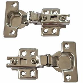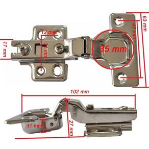 Dobradiça caneco 35mm em aço inox para portas de armário. Quantidade: Kit com 2 dobradiças caneco 35mm 8 parafusos Dobradiça inox curva kit c/2 Esta dobradiça caneco de 35mm, fabricada em aço inox de alta qualidade, é a escolha ideal para quem busca durabilidade e resistência à corrosão. Perfeita para portas de armários de cozinha, banheiro ou qualquer outro móvel, proporciona um fechamento seguro. Com design discreto, oferece ajuste preciso, garantindo a funcionalidade e a estética dos seus móveis. Instalação fácil e compatível com uma ampla variedade de materiais, esta dobradiça é a solução definitiva para quem deseja unir praticidade e estilo. São indicadas para móveis com portas sobrepostas que necessitam de um fechamento total, isto é, móveis simples de duas portas ou módulos de roupeiros modulados. Além disso, as dobradiças retas possuem uma limitação de abertura, ou seja, elas não abrem ângulos maiores que 90º Dobradiça em aço inox 201 calço fixo curvo com parafusos Benefícios: As dobradiças possuem design funcional permite o fechamento suave e silencioso das portas. São ideais para uso em móveis, proporcionando maior durabilidade às portas. Aplicações: Indicado para uso em móveis, para instalação de portas em armários, gabinetes, estantes e etc. Capacidade: A dobradiça é ideal para portas de 16 a 24mm; com duas dobradiças, suporta 25 kg. Características: Indicado para uso em móveis, para instalação de portas em armários, gabinetes, estantes e etc. Material: aço inox 201 com parafusos Medidas 111 x 62mm Caneco: diâmetro 35mm, profundidade 11,5mm. Entre furos 48mm Ângulo de abertura 90º Calço fixo duplo 4 furos . Entre furos 33mm do vendedor: 3 meses do vendedor: 90 dias Marca: Não Informado