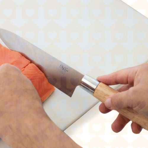 Feita de aço inoxidável forjado de alta qualidade, essa faca oferece durabilidade e resistência excepcionais. Seu cabo de madeira de lei proporciona uma aderência confortável e firme, enquanto a lâmina de 20,3 centímetros é especialmente projetada para atender às demandas dos sushimen, garantindo cortes precisos e consistentes.