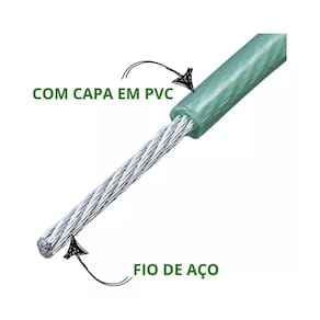 2un Varal cabo aço revestido Corda 2x10m parede e teto Você não precisa mais se preocupar com o varal arrebentar a toda hora, pois ele é feito em aço e encapado com termoplástico, não enferruja além de proteger a roupa e vai durar muito mais tempo, resistente e de bom tamanho O cabo de aço revestido é uma excelente opção na das cordinhas comuns de varal de teto e na montagem de varais de parede. Cor: transparente Metragem: 10m Benefícios: - Produto reforçado - Revestido em PVC - Maleável - Fácil instalação - Acabamento liso e uniforme - Pode ser em paredes, em varais de teto Marca: Não Informado Ean: 7899850353717