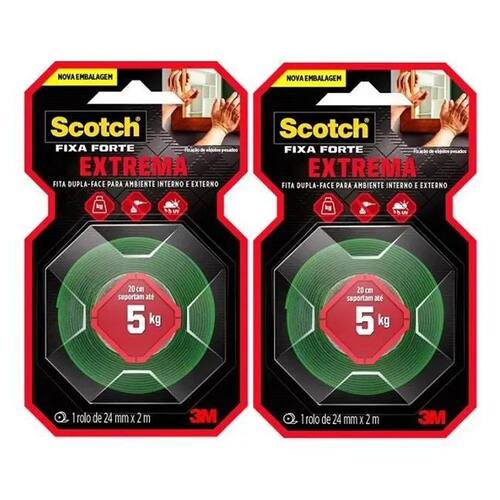 2X 02 Fita Dupla Face Espuma Fixa Forte 24Mmx2M 3M Scotch 5K