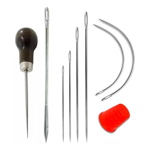 2X 07 Agulhas Agulhão Vazador Dedal Costura Couro Lona Estof