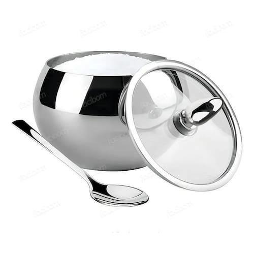 2X Açucareiro Em Aço Inox Com Tampa De Vidro E Colher Qualid