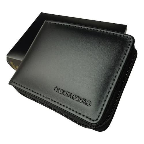 2X Águia Couro Carteira Masculina Com Zíper Carteira Cor Pre