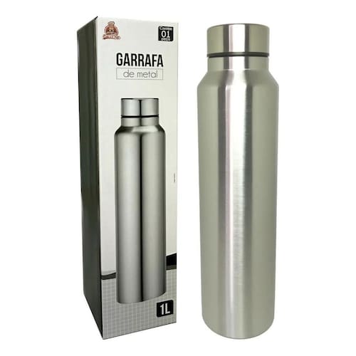 2X Bonscheff Garrafa De Água Squeeze Aluminio 1 L Cor Metal