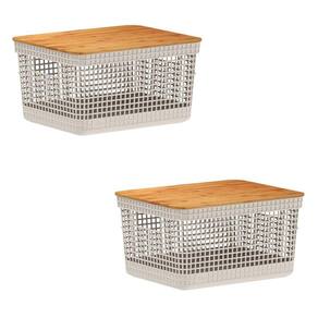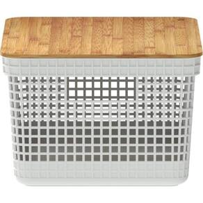 2x caixa organizadora cesto tampa de bambu 8 litros grid ou Cor: preto Maple decor F6179 Kit 2 unidades Caixa cesta organizadora m telada multiuso com tampa de bambu 8l grid ou A caixa cesta organizadora m telada multiuso com tampa de bambu 8l grid ou é produzida com material resistente, atóxico e de alta qualidade. Seu design possui furos, que possibilitam a ventilação e tampa de bambu, que deixa a decoração mais sofisticada e elegante. A linha de cestos grid foi desenvolvida com um mix perfeito entre conforto, design e funcionalidade. Os cestos possuem diversos tamanhos, são empilháveis e versáteis. Então bora deixar o seu ambiente ainda mais bonito, colorido e organizado com aquele toque especial do seu jeitinho ;d Detalhes do produto: - altura: 15,6 cm - largura: 23 cm - profundidade: 29 cm - marca: ou martiplast - capacidade: 8 litros - peso líquido: 668 gramas - conteúdo da embalagem: 2 cesto organizador com tampa - material: plástico pós-consumo proveniente de resíduos coletados do litoral brasileiro e bambu São diversas opções com cores neutras e acabamento fosco, que combinam com qualquer ambiente. Podem ser utilizados em closets, cozinhas, lavanderias ou até mesmo na sala de estar para decorar. Além de possuir tampa em bambu que traz um toque a mais de sofisticação e elegância para qualquer ambiente da sua casa. Limpeza: evitar o uso de materiais abrasivos. Recomenda-se higienizar com sabão neutro e esponja macia. Os cestos grid são perfeitos para aliar organização e decoração na sua casa.