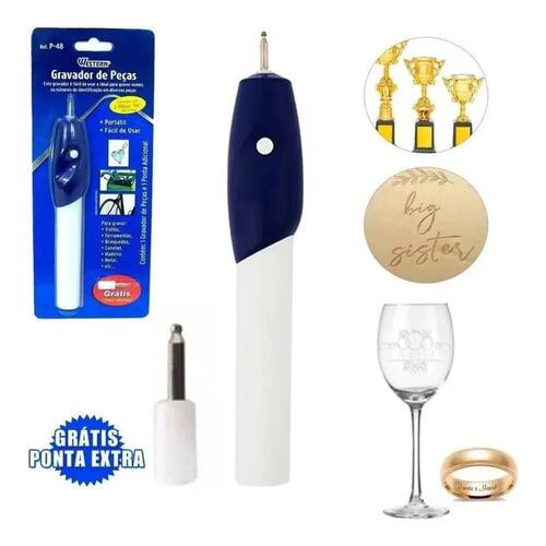 2X Caneta Gravadora Elétrica Grava Metais Jóias Plástico Vid