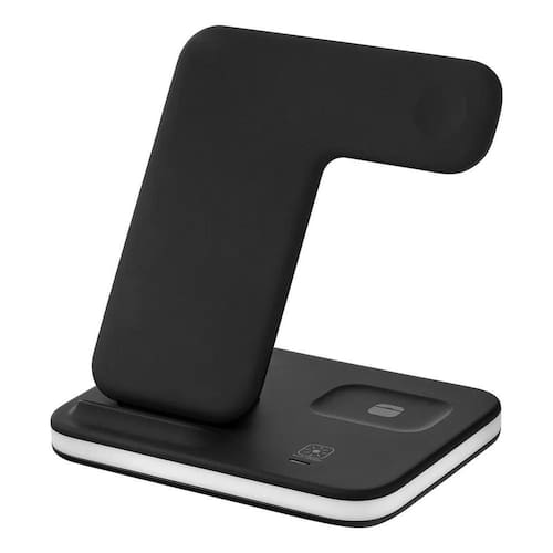 Carregador por indução 4 em 1 com 20W de potência. Permite carregar múltiplos dispositivos simultaneamente.Tipo