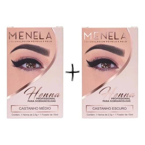 2X Combo Kit Henna Menela Castanho Médio + Castanho Escuro