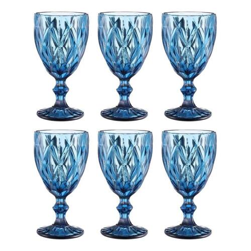 2X Conjunto 6 Taças Best Kaza Vidro Azul Diamante Vinho/Água