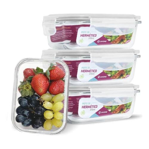 2X Conjunto Kit 4 Potes Vidro Hermético Marmita Fitness 370M