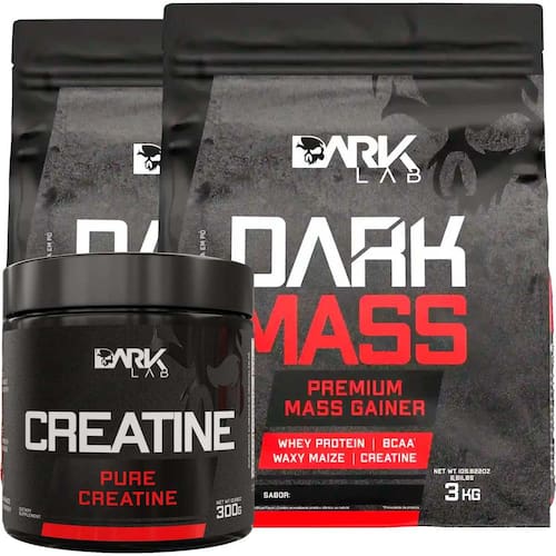 Conheça o kit 2x Dark Mass 3kg + Creatina 100% Dark Lab Chocolate Branco, a combinação perfeita para quem busca ganho de massa muscular rápido e eficiente. O Dark Mass é um mass gainer premium que une whey protein, BCAA, creatina e waxy maize, ingredientes essenciais para recuperação e crescimento muscular. A fórmula com creatina amplifica a força e resistência durante os treinos, enquanto o sabor chocolate branco garante uma experiência saborosa sem abrir mão da qualidade.