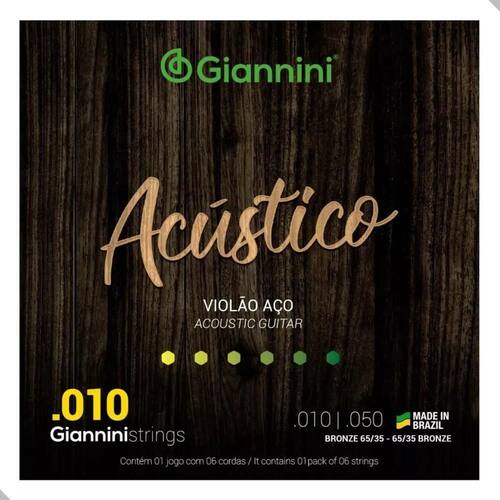 2X Encordoamento Cordas Violão Aço 010 Giannini Acústico