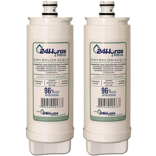 Kit com 2 filtros refil compatíveis com purificadores de água Colormaq modelos Acqua. Elimina cloro, gostos, cheiros, partículas sólidas e ajuda a elevar o pH. Troca rápida e fácil. Recomendado a troca a cada 6 meses.Tipo