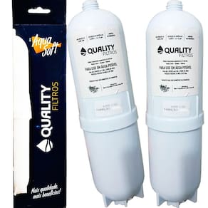 Kit com 2 filtros refil compatíveis com purificadores de água Soft by Everest. Remove cloro, elimina sabores, retém partículas de sujeira, barro e ferrugem, e ajuda a elevar o pH. Eficiência de retenção de partículas: classe III. Eficiência de redução de cloro livre: aprovado. Eficiência bacteriológica: aprovado. Produto em conformidade com a norma ABNT NBT 16098:2012.Tipo