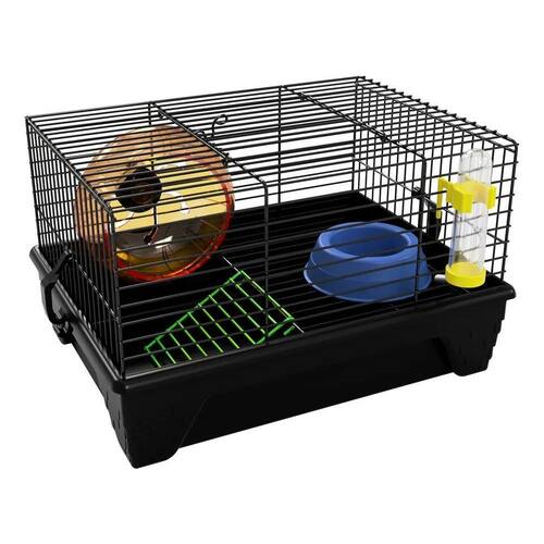 2X Gaiola Hamster Completa Luxo Transporte Roedores Preta