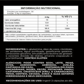 Ingredientes glutamina hf suplementos: l-glutamina, óleo de coco, cloridrato de piridoxina, água purificada, geleificante gelatina,