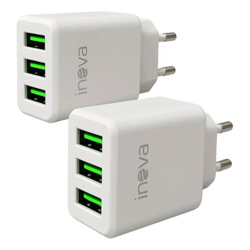Carregador rápido com 3 portas USB e 5.1A de corrente total. Ideal para carregar múltiplos dispositivos simultaneamente.Tipo