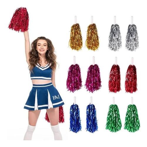 2X Kit 2 Pompom Metalizado Líder De Torcida Festa Esporte Co
