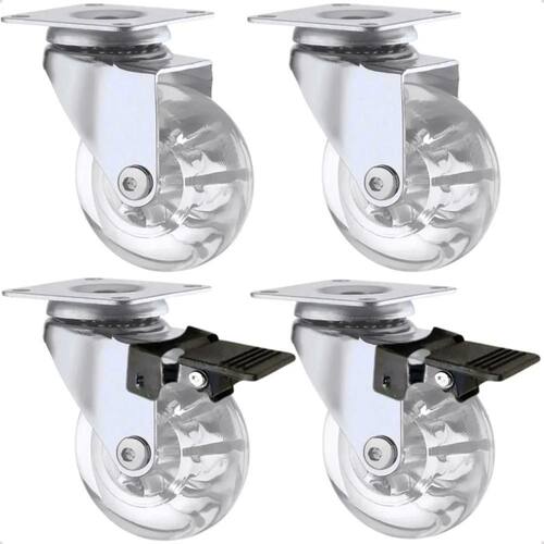 2X Kit 4 Rodinhas 50Mm Gel Silicone 2 Com 2 Sem Trava Rodizi