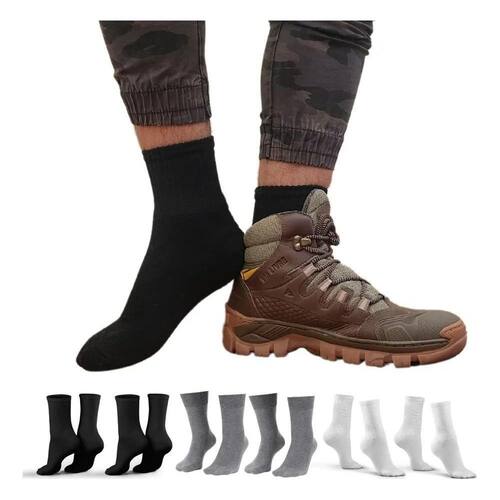 2X Kit 6 Pares Meias Masculina Cano Alto Algodão Longo Médio