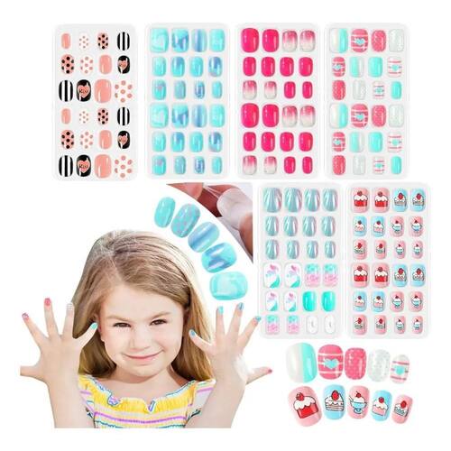 2X Kit 60 Unhas Postiça Infantil Decoradas Adesivo