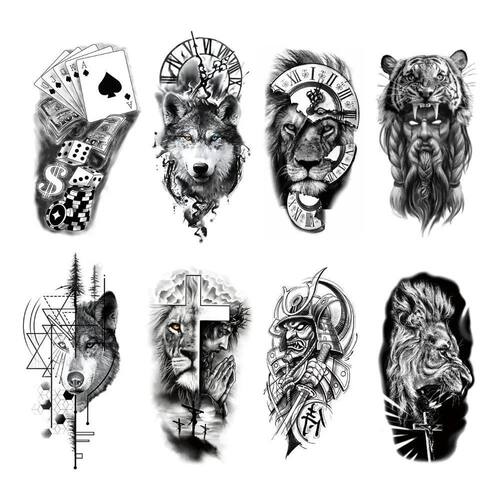 2X Kit 8 Tatuagens Falsas Temporárias Realista - Masculina