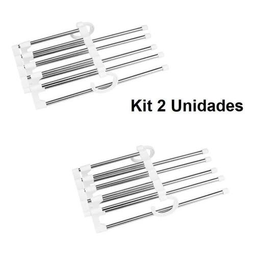2X Kit Clink 2 Cabides Para Calças Inox 5 Divisórias Retráti
