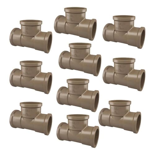 2X Kit Com 10 Tê Soldável 25Mm Em Pvc Fortlev