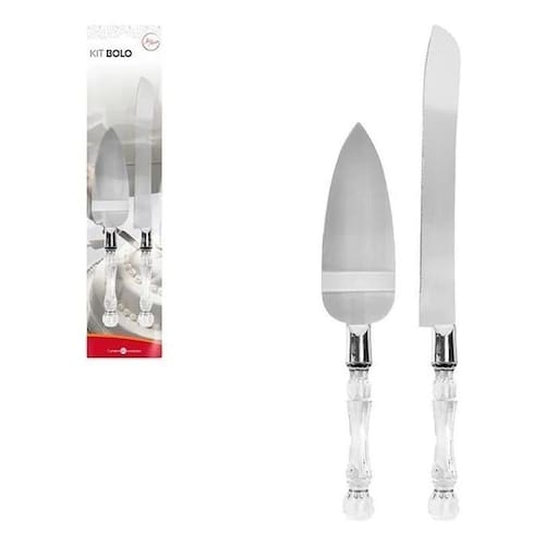 2X Kit Faca E Espátula Para Cortar Bolos E Tortas Cabo Acríl