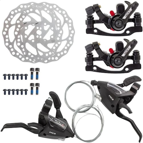 2X Kit Freio Disco + Alavanca Passador Rapidfire Bike Aro 26