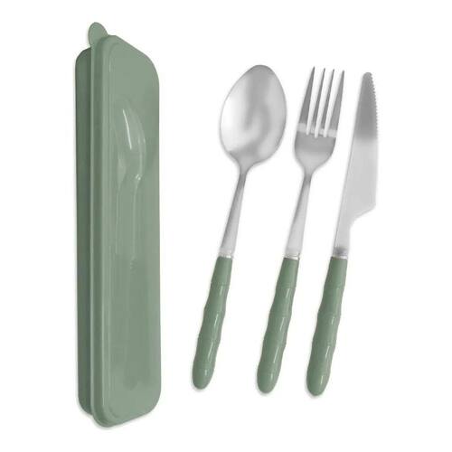 2X Kit Jogo De Talheres Inox 3 Peças Com Estojo Para Marmita