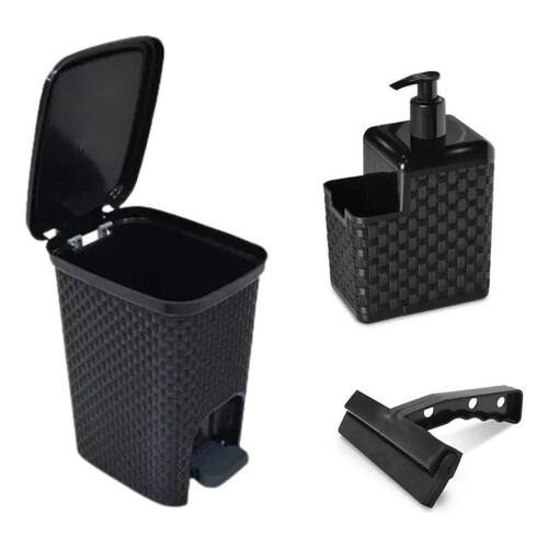 2X Kit Pia Lixeira Rattan Porta Detergente Esponja Rodo Pia
