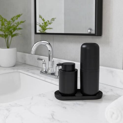 2X Kit Porta Sabonete Liquido Escova Dente Jogo Banheiro Lav