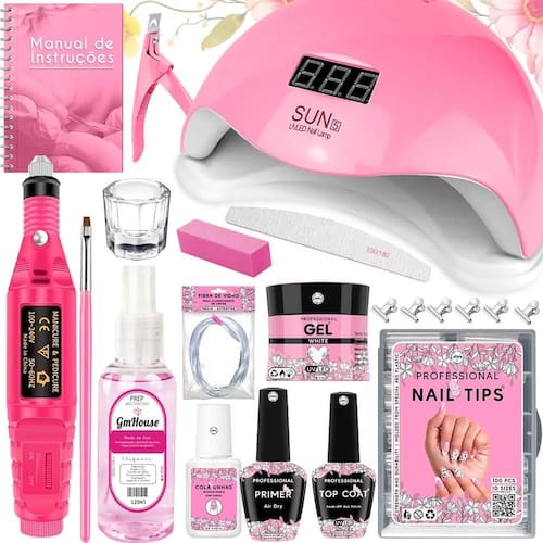 2X Kit Unha De Gel Alongamento Fibra De Vidro Tips Completo