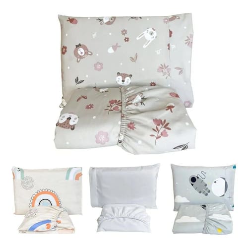 2X Lençol Bebê Berço Americano Com Elástico E Fronha Estampa