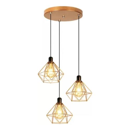 2X Luminária E-Led Pendente Triplo Aramado Diamante Cor Cobr
