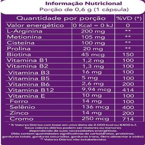 Ingredientes: ácido ascórbico vitamina c , bisglicinato de cobre, bisglicinato ferroso, d-biotina, dl-alfa-tocoferol vitamina e , sulfato De zinco, selenito de sódio, tiamina mononitrato vitamina b1 , riboflavina vitamina b2 , nicotinamida niacina , pantotenato de cálcio vitamina b5 , cloridrato de piridoxna vitamina b6 , cianocobalamina vitamina b12 , amido, estabilizante celulose microcristalina, antiumectante dióxido de silício.