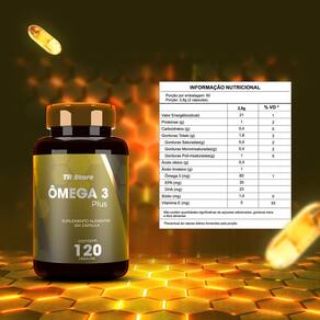 Suplemento alimentar em cápsulas ômega 3 plus.