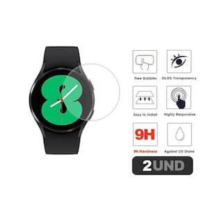 2x películas para galaxy watch 4 40mm em vidro temperado Atenção: a película serve apenas no galaxy watch 4 40mm, não tente comprar para outro modelo sem antes perguntar a compatibilidade. Características Feita em vidro temperado, nossa película possui apenas 0.3 mm de espessura, garantido total transparência e alta resistência, capaz de suportar até mesmo objetos afiados como lâminas e chaves. Ela possui adesivo à base de silicone, cujo instalação é bem simplificado, bastando alinhar a película com a tela. No entanto, antes de aplicar a película é necessário limpar a tela do seu relógio utilizando o kit de limpeza que enviamos junto com a peça. Uma vez que a película seja trincada, as partículas que são formadas não são afiadas e não se desprendem da camada adesiva de silicone, o que a torna bastante segura. Conteúdo da embalagem 2x películas para galaxy watch4 40mm em vidro temperado2x kits de flanelas para limpeza da tela Informações importantes 1 - os itens e/ou acessórios deste anúncio não possuem relação com a marca do fabricante do relógio ou smartwatch.2 - as imagens do anúncio são ilustrativas, ou seja, pode ocorrer leve variação entre o que é visualizado aqui e o produto físico.