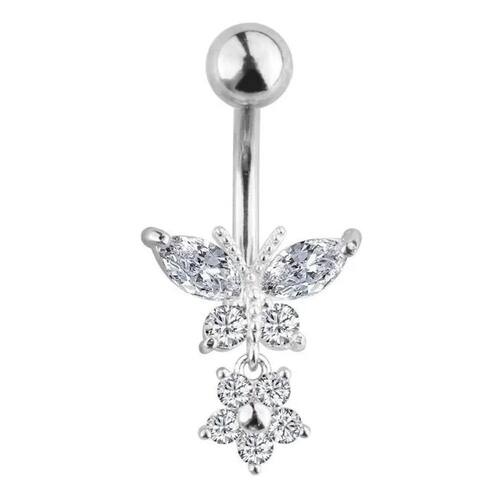 2X Piercing De Umbigo Prata Pendurado Pedra Borboleta Flor