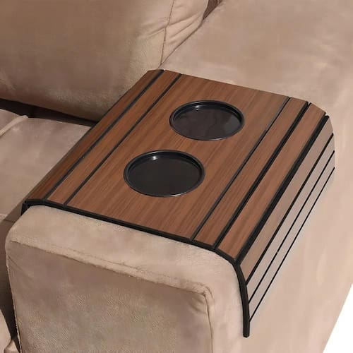 2X Porta Copo Sofá Esteira Bandeja Braço Flexível De Madeira