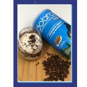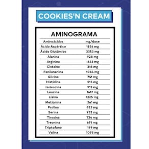 Ingredientes: proteína de ervilha, proteína de arroz, biscoito triturado, leite de coco, proteína de lentilha, vitamina b12 metilcobalamina , estabilizante goma guar, espessante goma xantana, aroma idêntico ao natural de cookies e baunilha, edulcorante glicosídeos esteviol.